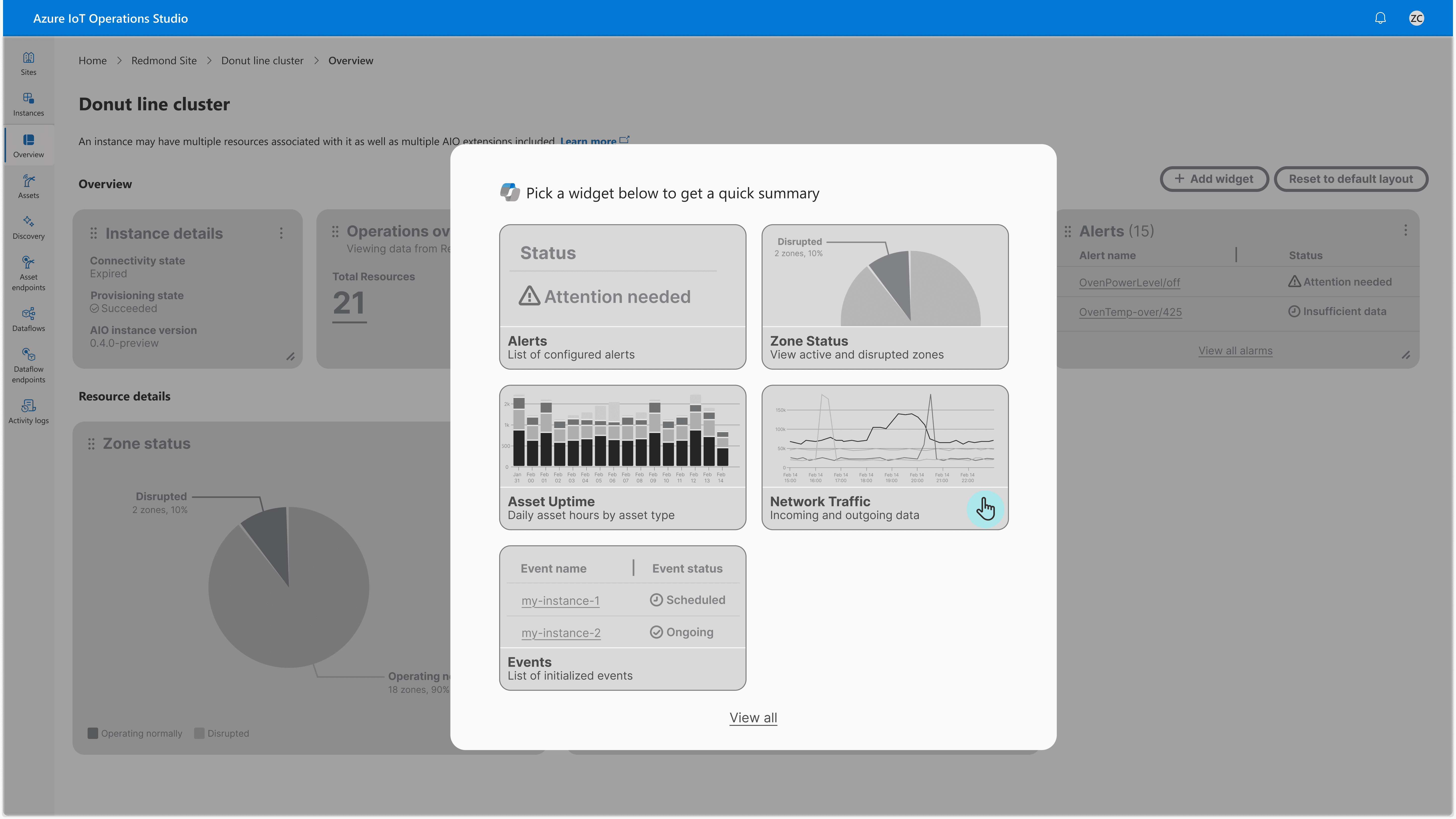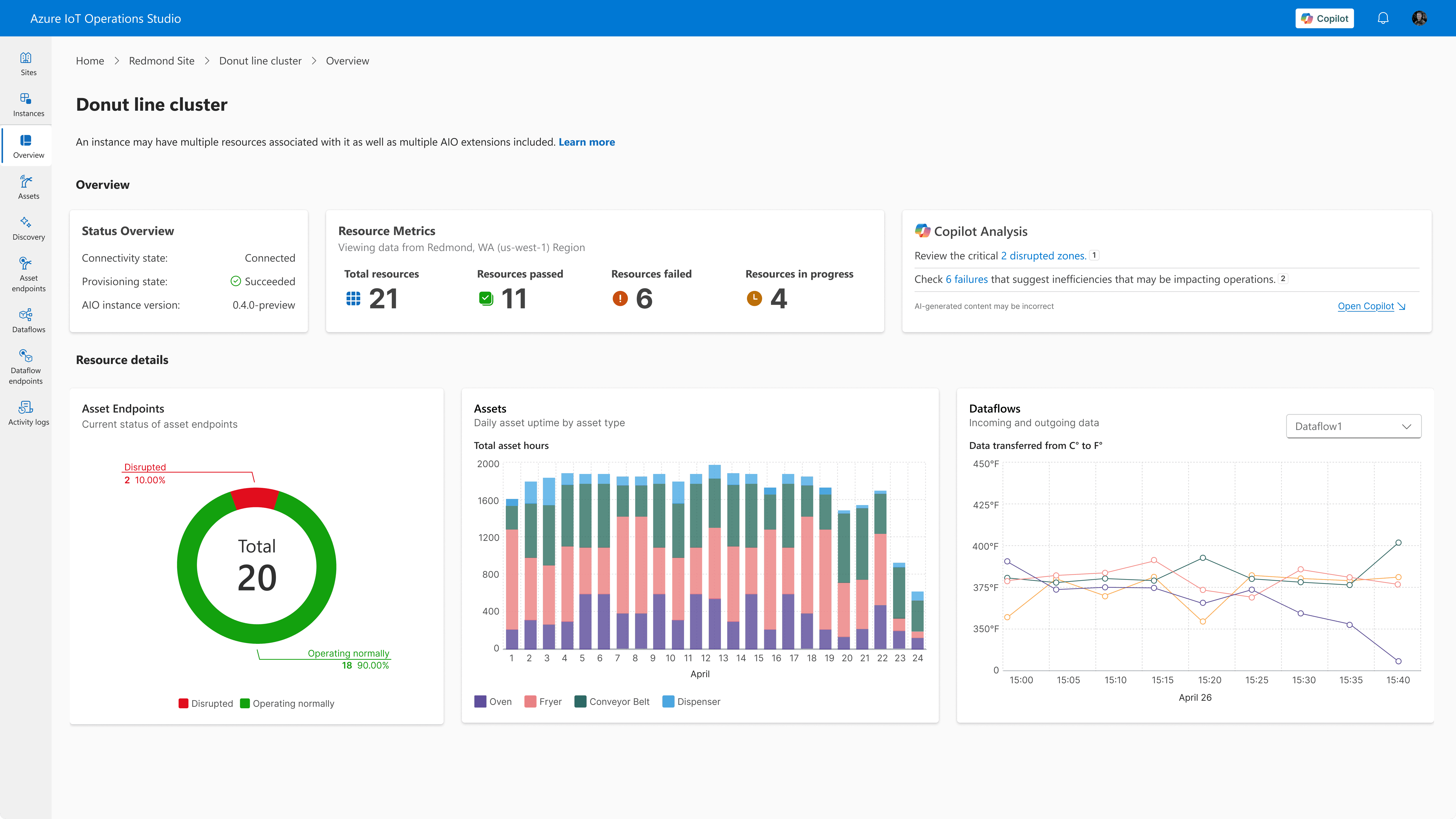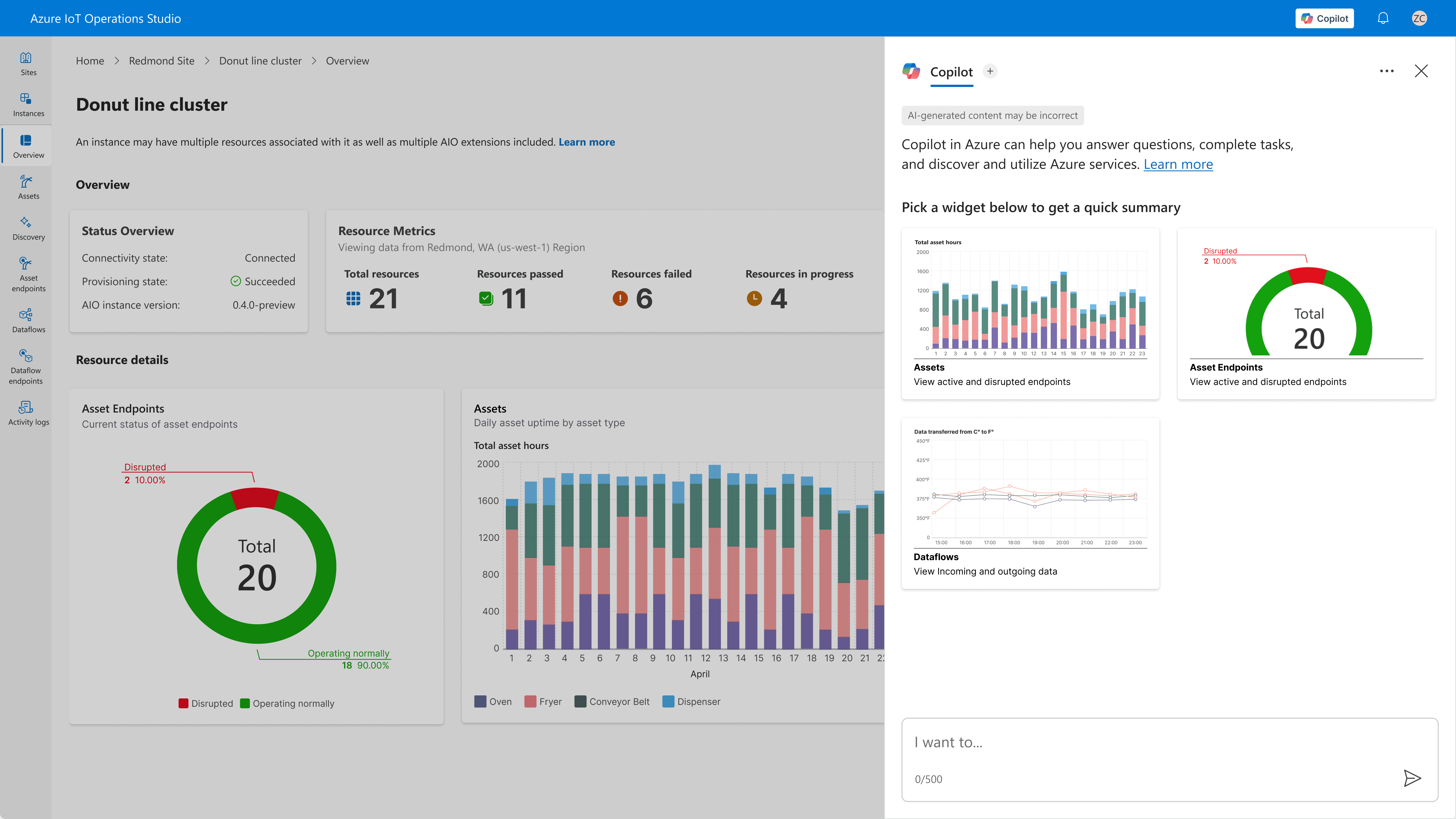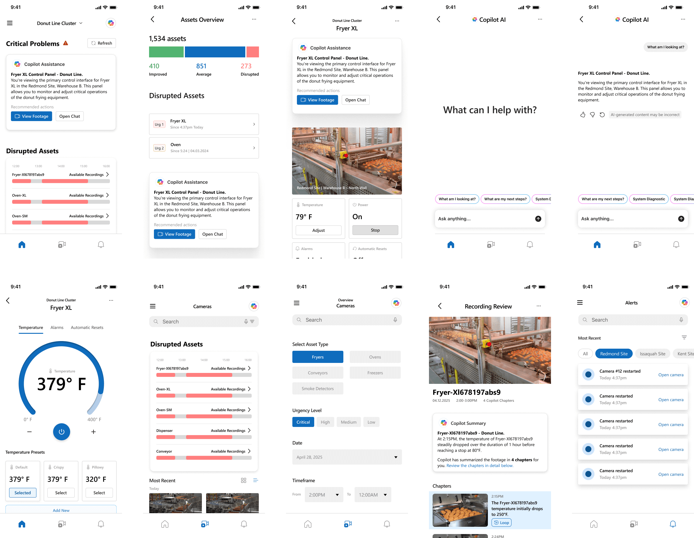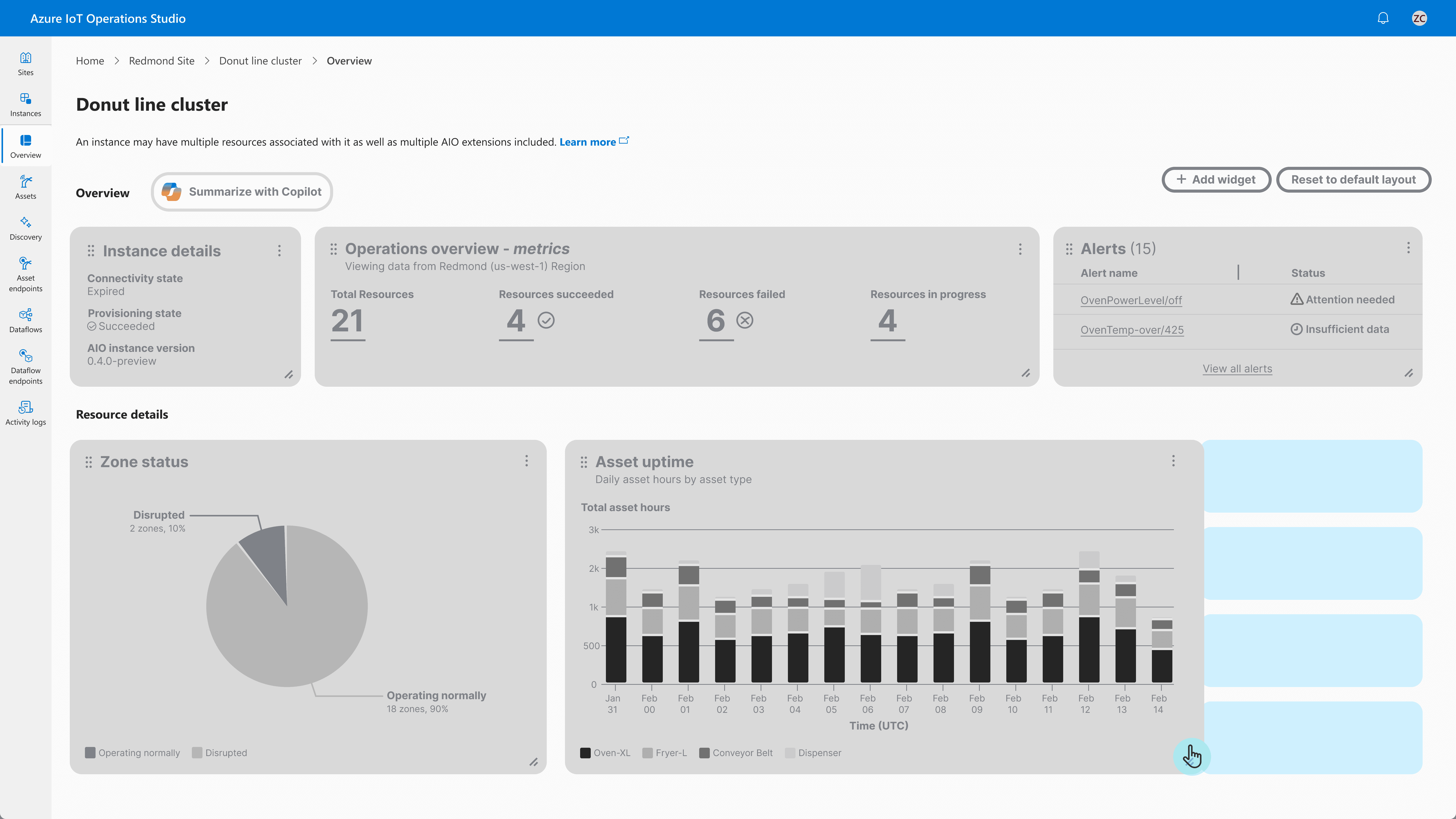 Mobile widgets show how each production line and asset is performing without overwhelming you with details. Copilot summaries at the top lets you understand system health in seconds, even while moving between locations.