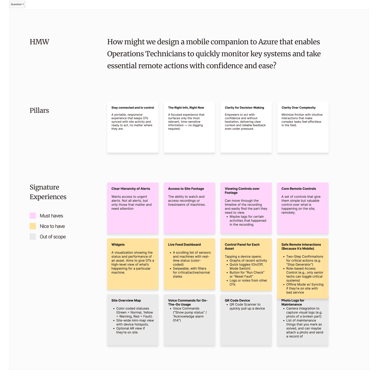 As one of five designers on this sponsored capstone for Microsoft, I reimagined how Operation Technicians use Azure IoT. The first three months focused on dashboard redesign with AI Copilot integration. The next three explored net-new mobile experiences for on-the-go monitoring. I personally led the design of glanceable summaries and remote monitoring on the mobile app.