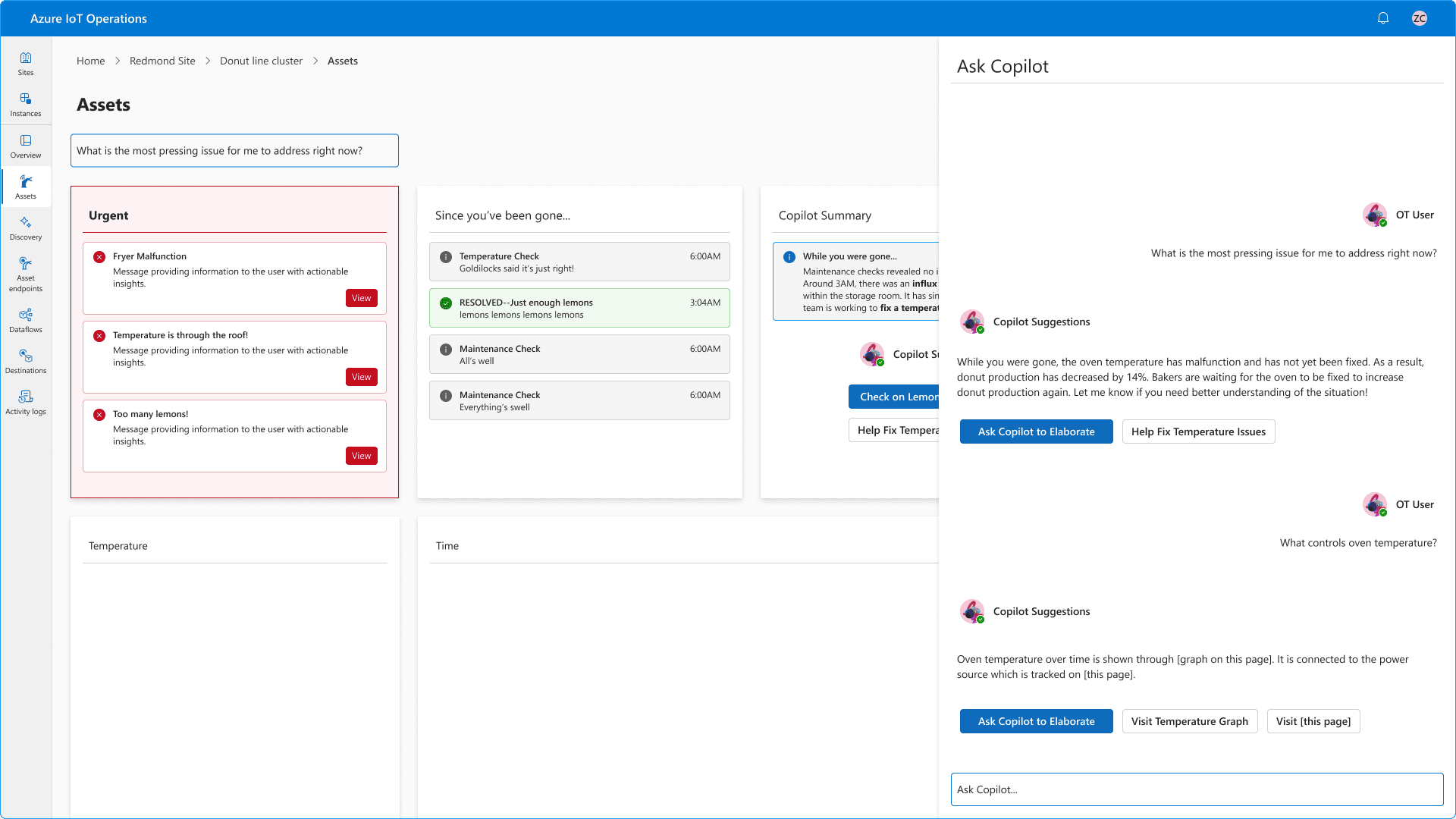 To access insights efficiently, OTs can ask Copilot questions in natural language. Instead of reading documentation or analyzing data manually, they get immediate answers with recommended actions.