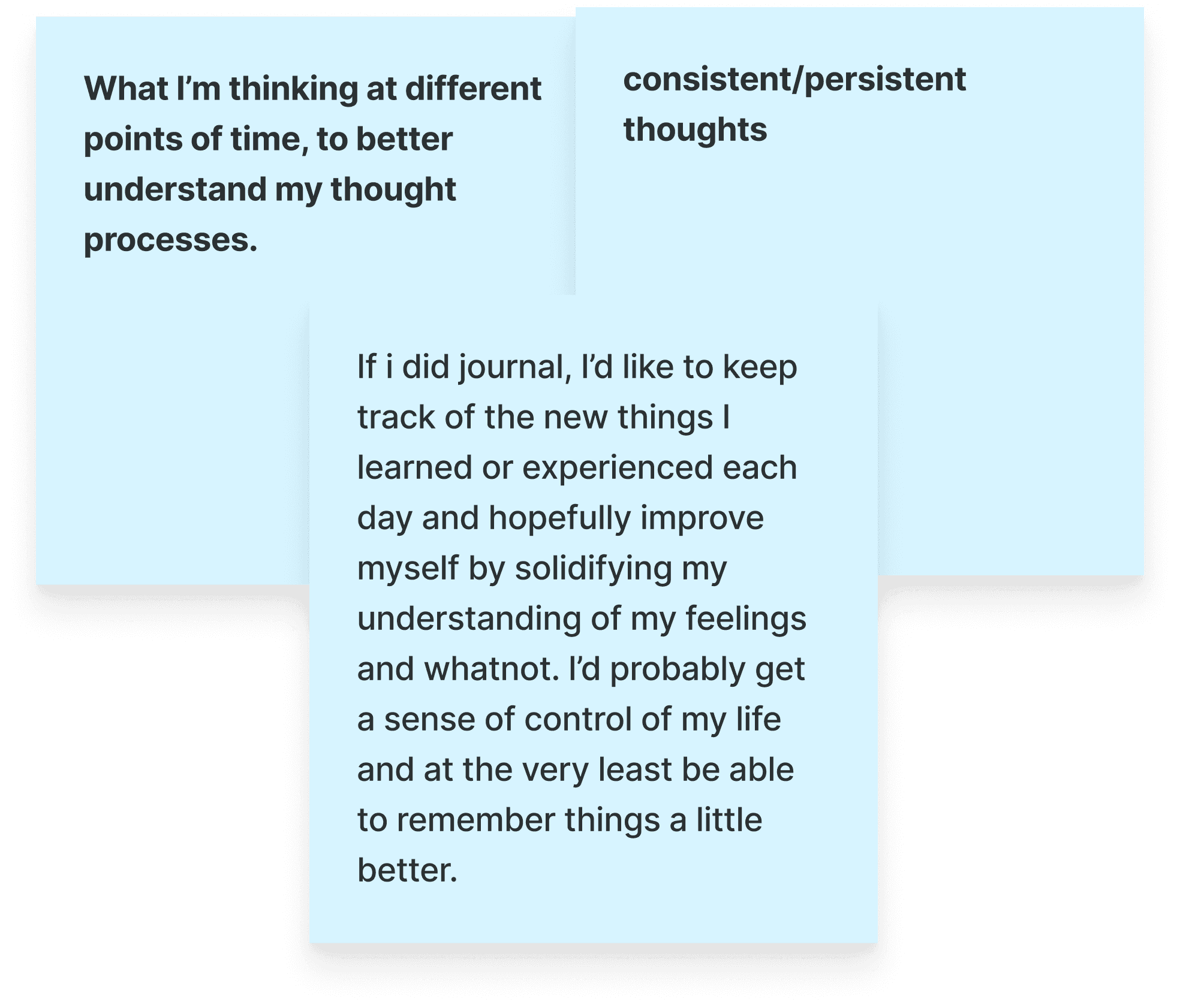 From our research, we knew users wanted to understand not just what they were thinking, but when and why. This guided our selection of signature experiences to develop further: