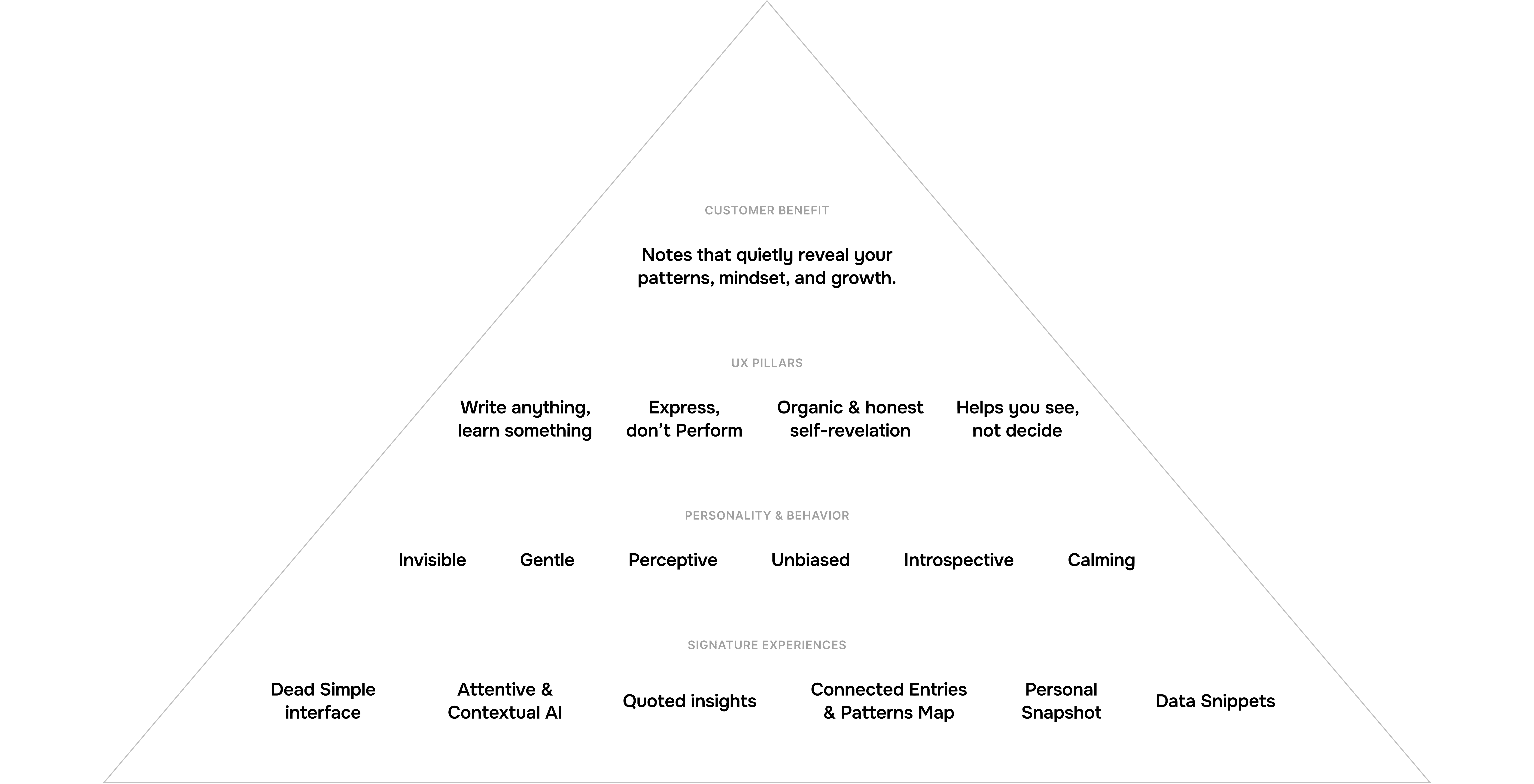 I've used my notes app for years, and it's become a trusty but unstructured archive of my life, from 2am thoughts, to-dos, and mind dumps. When I tried to make sense of it, I realized most journaling tools share the same flaw: they organize what you write, not what it means.