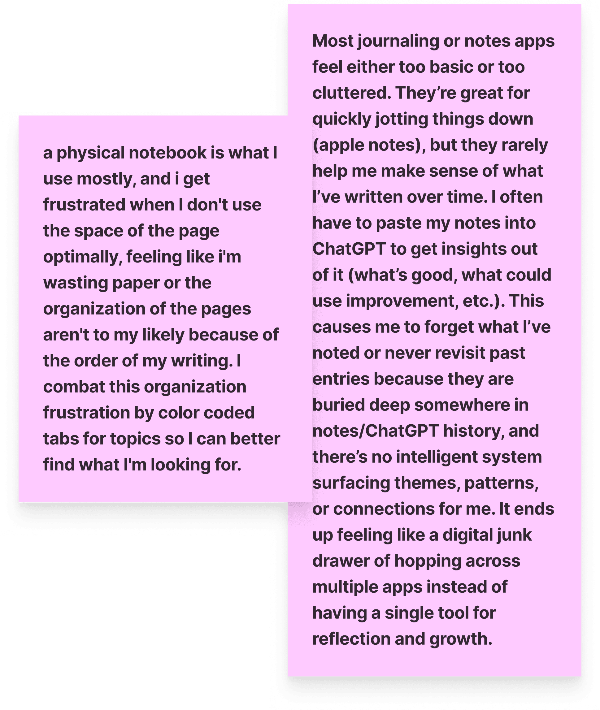 Q: WHAT FRUSTRATES YOU ABOUT CURRENT JOURNALING OR NOTES APPS YOU'VE USED?